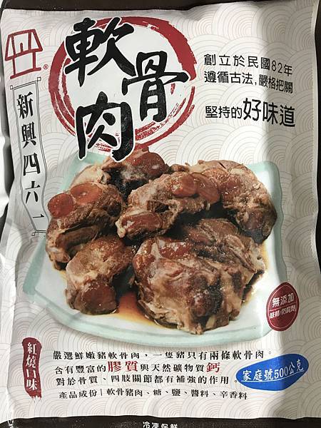 紅燒軟骨肉份量很大500公克,有膠質又有鈣...小孩老人補骨質關節的好東西,但500公克對我家2大2小來說太多啦。所以我必須分2餐吃。
